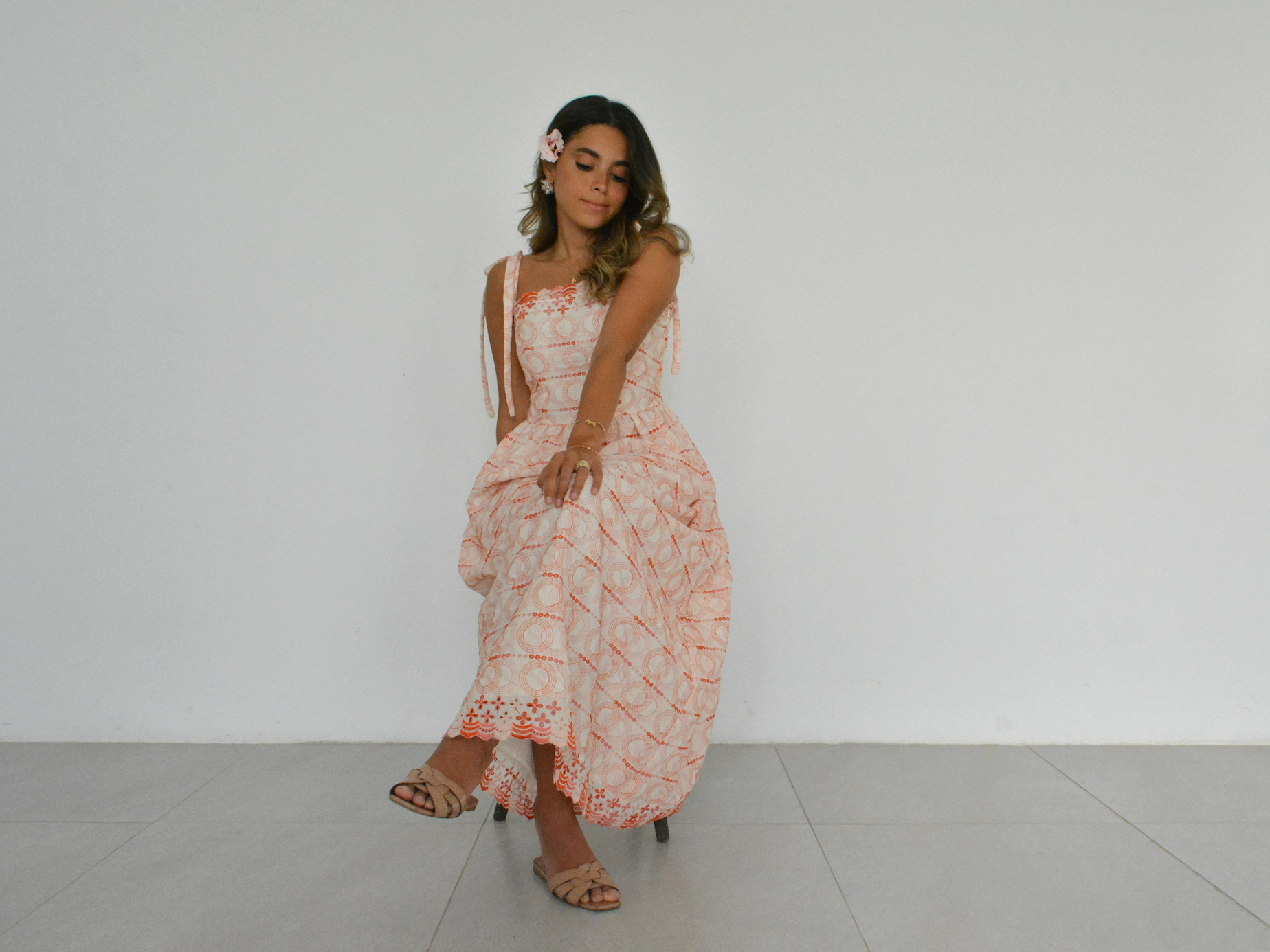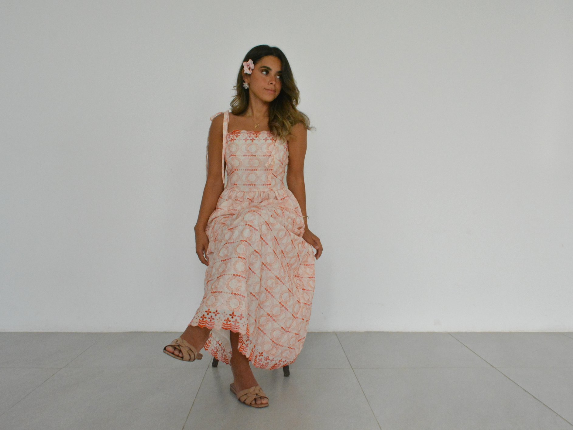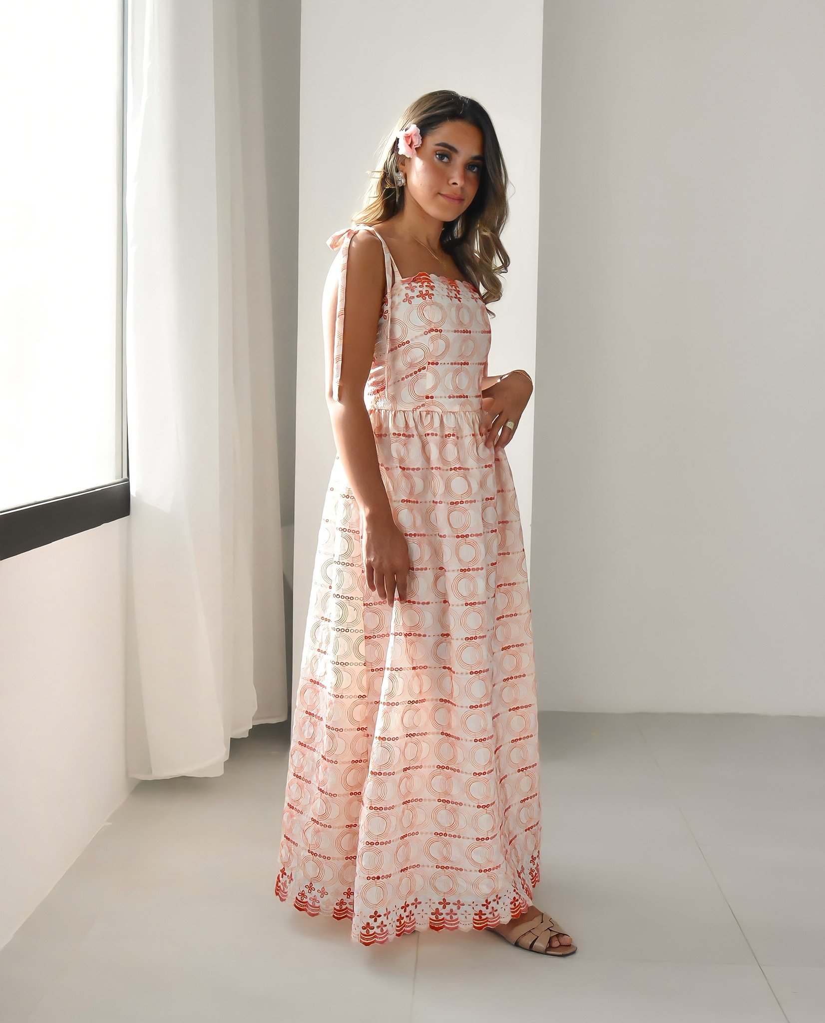 فستان طويل من مزيج القطن والكتان