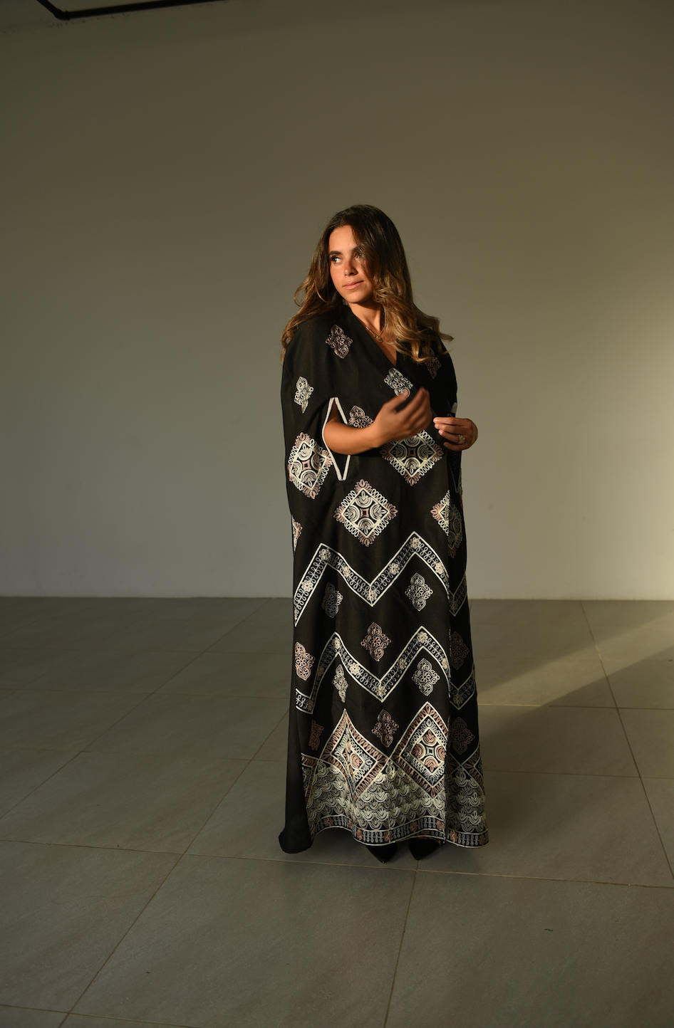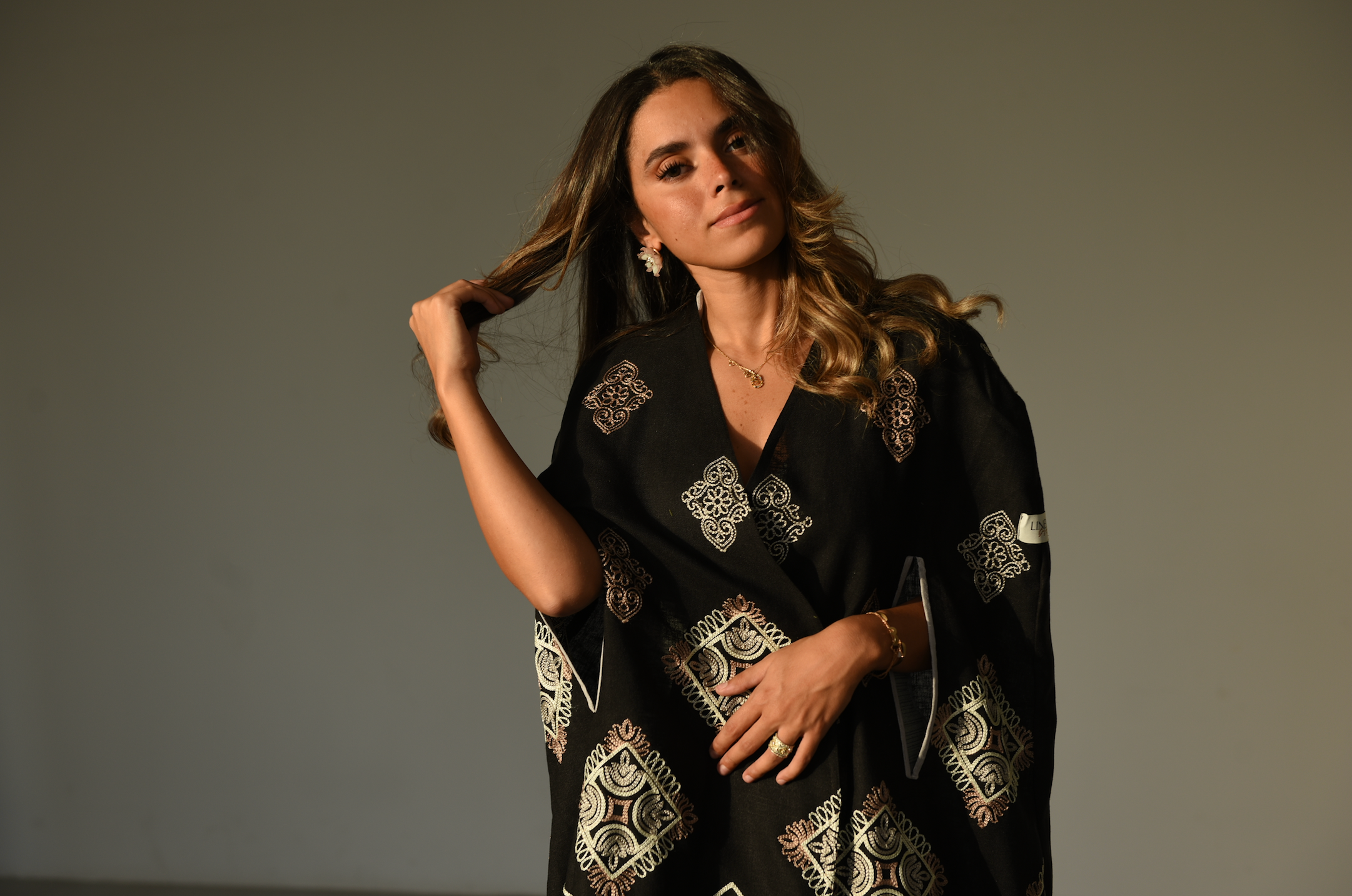 Linen embroidered cape abaya